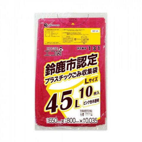 鈴鹿市認定 プラスチックごみ収集袋 Lサイズ45L SSP-45 ピンク半透明 10枚×60冊