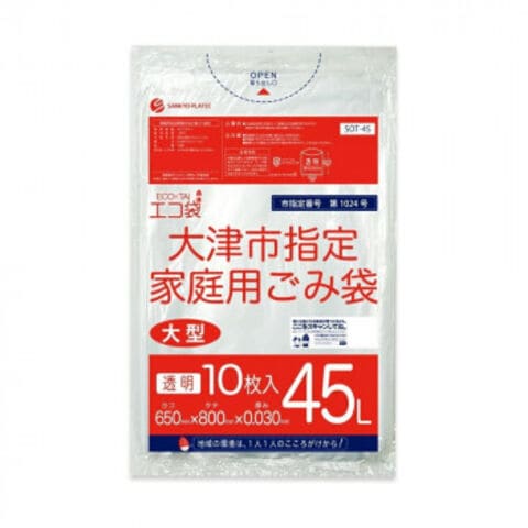 ECO TAI エコ袋 大津市指定家庭用ごみ袋 大型45L SOT-45 透明 10枚×60冊