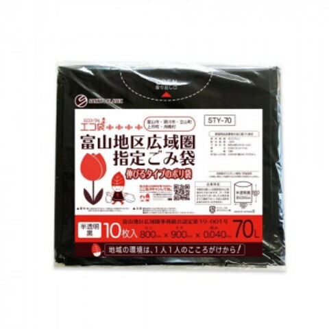 ECO TAI エコ袋 富山地区広域圏指定ごみ袋 伸びるタイプのポリ袋70L STY-70 黒半透明 10枚×40冊
