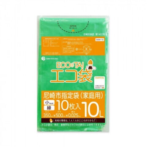 ECO TAI エコ袋 尼崎市指定袋(家庭用)10L SAM-10 グリーン 10枚×100冊