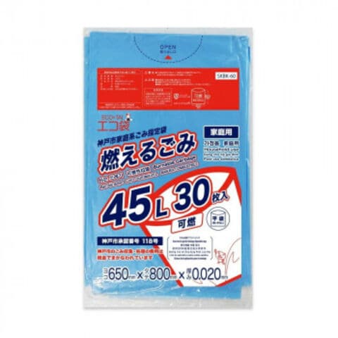 ECO TAI エコ袋 神戸市家庭系ごみ指定袋 燃えるごみ 可燃45L SKBK-60 青 30枚×20冊