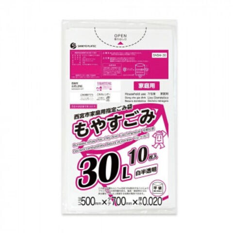西宮市家庭用指定ごみ袋 もやすごみ 30L SNSM-30 白半透明 10枚×100冊