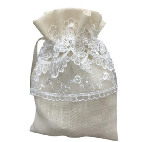 ゾエ 巾着袋 ベージュ生地×白レース 18×25cm 548-23
