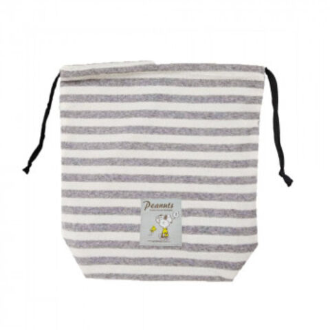 PEANUTS スヌーピー マチあり巾着 ボーダー グレー