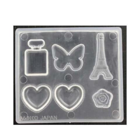 | 粘土や透明感のあるレジンクラフトにも楽しめる、繰り返し使えるやわらかい型です。紫外線を通す透明なモールドなのでUVレジンがきれいに固まります。また、気泡や粘土の浮きがひと目でわかって便利です。 ★エッフェル塔、バタフライ、香水ビン、バラ、ハートマカロンのモチーフづくりに。 ★この型1つで5種類のフレンチモチーフアイテムができます。 ★スクラップブッキングのアイテムやカボッションづくりに。 ※出来上がりサイズ:約3~4cm |