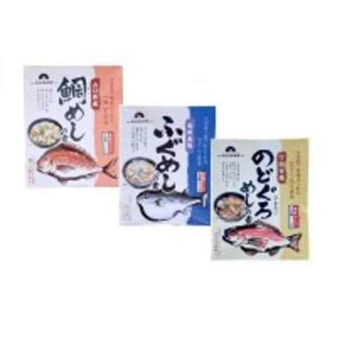 | セット内容 | 鯛めしの素:275g(2合用・約2~3人前)×2袋 のどぐろめしの素:275g(2合用・約2~3人前)×2袋 ふぐめしの素:275g(2合用・約2~3人前)×2袋 |