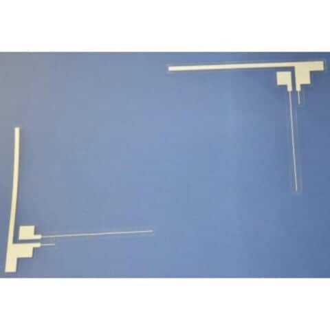 L型フィルムアンテナ左右2枚入り。コネクター貼付部のサイズ内にケーブル側のエレメント端子を貼り付ける事が出来れば使用可能です。エレメントの短い方がアース側となります。一部車両(セルシオなど)で電波を通さない特殊加工のガラスには使用できません。給電部分が合えば使用可能な汎用品です。