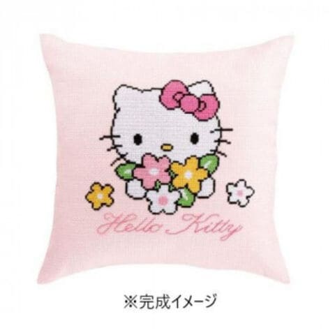 サンリオキャラクターハローキティのクッション。お部屋のインテリアに最適です。技法はクロス・ステッチ技術レベルは初級~中級者向け。