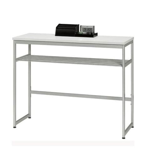 | 天板は、明るいホワイト色。シンプルなデザインで様々なオフィスにあわせやすい記載台。天板下には、ちょっとした手荷物が置けるように棚板をご用意致しました。 |