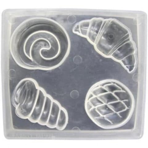 | 粘土や透明感のあるレジンクラフトにも楽しめる、繰り返し使えるやわらかい型です。紫外線を通す透明なモールドなのでUVレジンがきれいに固まります。また、気泡や粘土の浮きがひと目でわかって便利です。 ★クロワッサン、メロンパン、コルネ、ロールケーキが作れる型です。 ※出来上がりサイズ:約3~4cm ★コルネとロールケーキは、フェイククリームを絞れる凹み付き。 |