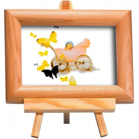 ナチュラルイーゼル付(ちひろ絵はがき一枚入り) 1412540・乳母車と赤ちゃん