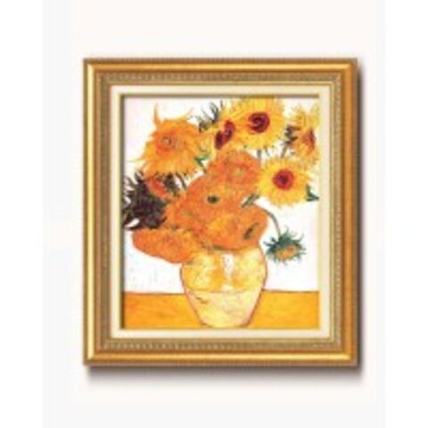| 炎の画家ゴッホの描いた「ひまわり」の複製画を迫力ある10号サイズの金のフレームに入れた高級な名画額です。リサイクル資源を利用したエコマーク認定商品です。 |