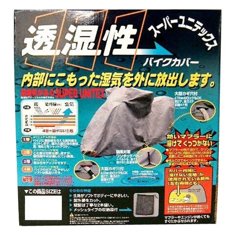 | 内部にこもった湿気を外に放出します。4層構造で雨や紫外線、ホコリなどをシャットアウトし、さらに内側に溶けない生地を使用しているので、走行後すぐのマフラーやエンジンが熱い時でもすぐにかぶせられます!! |