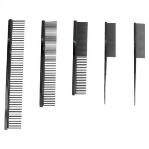 | 日本製の高品質コーム!!少し重量感があります。長毛種の背中をセンターから分ける時やラップする時に便利です。 ※画像はイメージです。お届けはスーパープロコーム セットコームのみとなります。(タイプは細目・荒目からお選びください) |