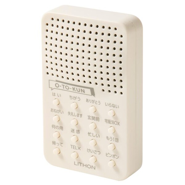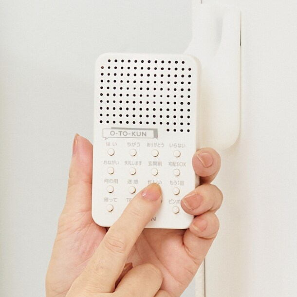 | 玄関先での対面のやり取りにストレスや不安を感じる方をサポート。 インターフォンや電話越しにボタンを押すと、男性の声で相手に応答します。 たとえば ●宅配サービスが来た時に 「玄関の前に置いておいてください」 「ありがとうございます」 ●知らない人の訪問に 「何の用ですか?」 「帰ってください」 などと伝えることができます。 また、しつこい迷惑電話には会話中に「ピンポーン(インターホンの音)」を鳴らして、来客を理由に電話を切ることができます。 女性の一人暮らしや高齢者世帯、子どもの留守番時などで大活躍! 防犯対策としてもお使いいただけます。 16種の音声パターン 音声パターン全16種類。 シチュエーションに合わせて応答することができます。 < 音声一覧 > [01]「 はい 」 [02]「 違います 」 [03]「 ありがとうございます 」 [04]「 いらないです 」 [05]「 お願いします 」 [06]「 失礼します 」 [07]「 玄関の前に置いといてください 」 [08]「 宅配BOX に入れといてください 」 [09]「 何の用ですか?」 [10]「 迷惑なんで 」 [11]「 今、忙しいんで 」 [12]「 もう1回言ってもらえますか 」 [13]「 帰ってください 」 [14]「 もう電話してこないでください 」 [15]「 これ以上来たら警察呼びますよ 」 [16]「 ピーンポーン 」 専用ホルダーとホルダーを設置するための両面シールが付属しています。 インターホンの横に設置すれば、必要な時にさっと使えます。 |