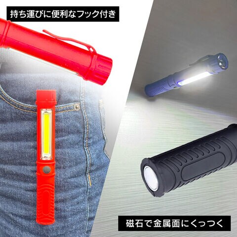 照射LED×広範囲COBライト【2本セット】高輝度 COBハイパワースティック2WAYライト フック&マグネット付【 COB型LEDライト 懐中電灯 ハンディライト アウトドア レジャー 便利 コンパクト 軽量 】 /60N◇ スティックライト2個:ブラックのレビュー