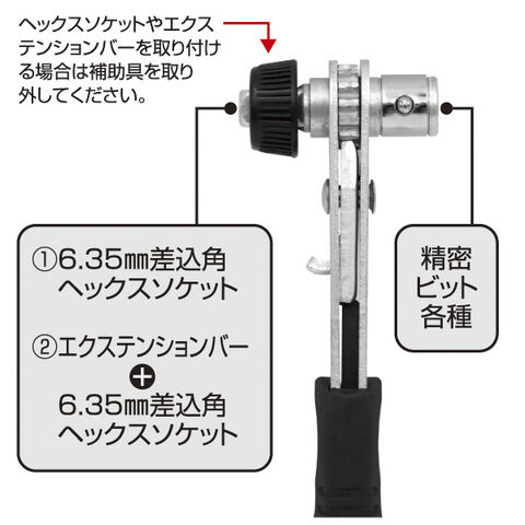 | サイズ | 専用ケース:約W9×D3.5×H15cm ラチェットハンドル:約W3.5×D2×H12.5cm エクステンションバー:長さ約7.2cm |