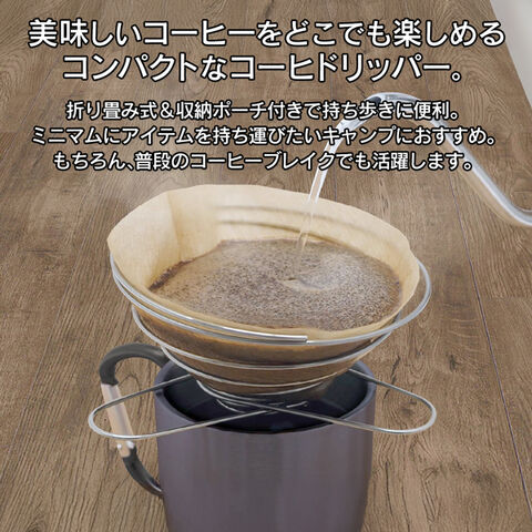 折りたたみ式 コーヒードリッパー 収納ポーチ付き ステンレス製 キャンプ アウトドア おしゃれ ついで買い特集【 金属製 ドリッパー ワイヤーフレーム 珈琲 キッチン用品 コンパクト収納 スリム 】 /60N◇ ドリップフレーム