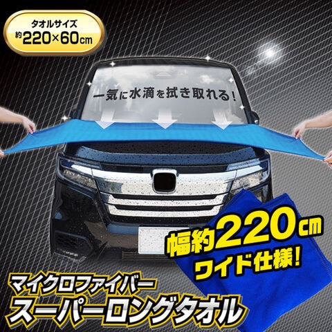 スーパーロングタオル 220cm×60cm マイクロファイバータオル 吸水タオル【 洗車 拭き上げ クロス 自動車 カー用品 車体 ルーフ 天井 窓 お風呂 時短 便利グッズ 新着!】 /60N◇ 220cmタオル