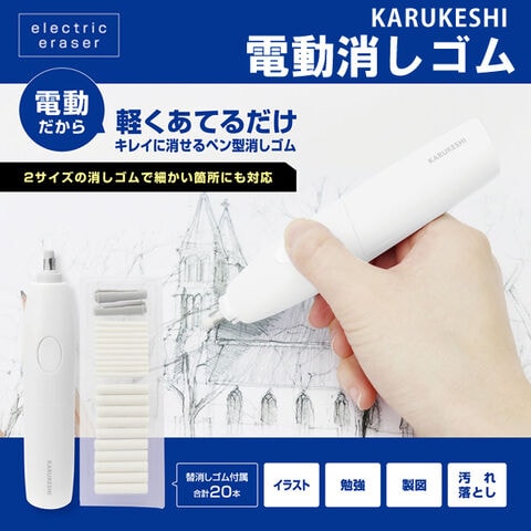 電動消しゴム かる消し ペン型 細い/太い 2種消しゴム付き スリム 乾電池式【 電気 ペン型けしゴム 文房具 文具 イラスト 製図 勉強 細部 角 掃除 汚れ落とし 時短 便利グッズ 】 /60N◇ かる消し
