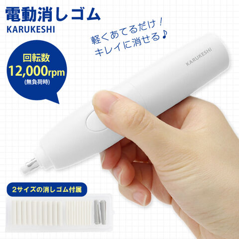 毎分12,000回転する電動消しゴム! 細かい汚れもかるーく消せる♪ |