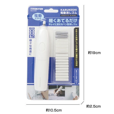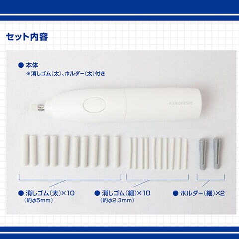 | セット内容 | 本体(保護カバー付き) 消しゴム(太) 約φ5mm×10本 消しゴム(細) 約φ2.3mm×10本 ホルダー×2個 |