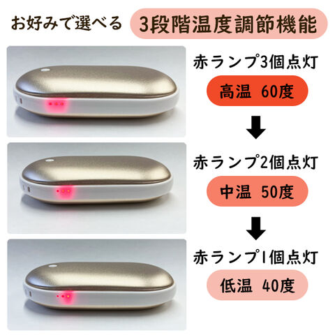 充電カイロとモバイルバッテリーの 2WAY! 3段階温度調節できます! |