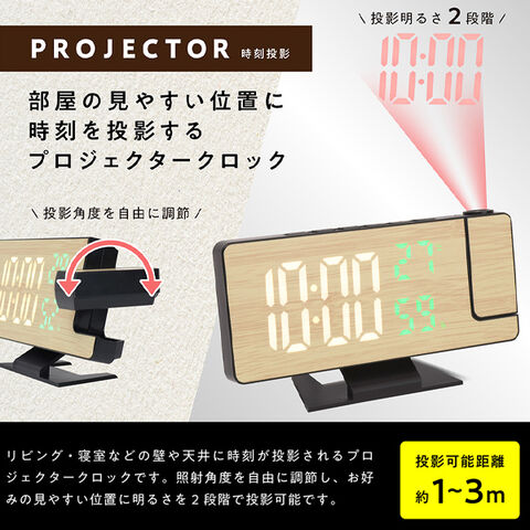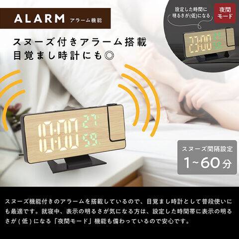| ウッド調 多機能搭載 プロジェクタークロック |