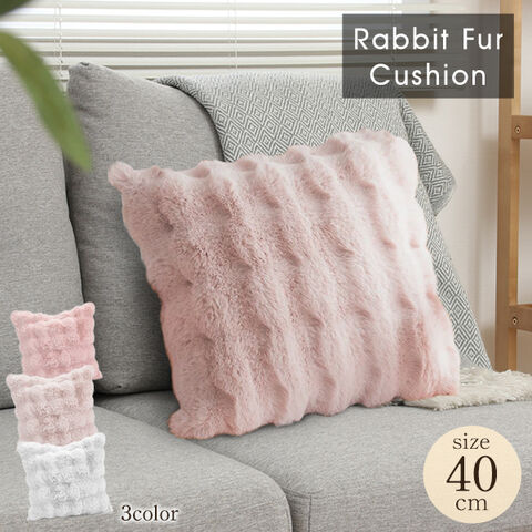 送料無料 ! ファークッション 40cm うさぎ風 なめらかタッチ ふわふわ フェイクファー ついで買い特集【 ラビット 四角 スクエア 角型 インテリア かわいい おしゃれ 背もたれ 座布団 圧縮 】 送料込 80S◇ タッチクッション:ホワイト