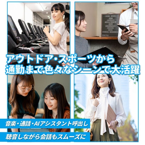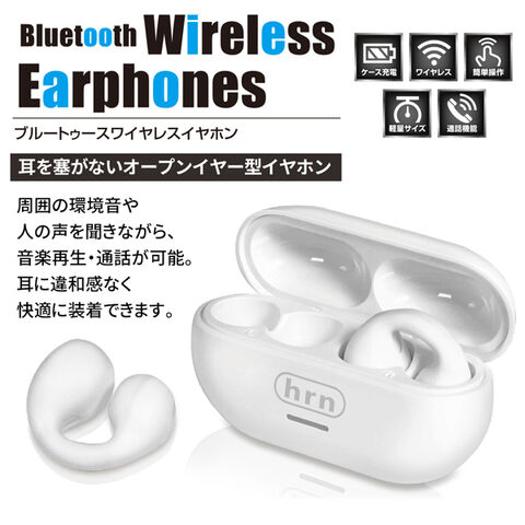 耳を塞がないオープンデザイン。 ケースに本体を入れて 充電しながら保管&持ち歩ける。 |