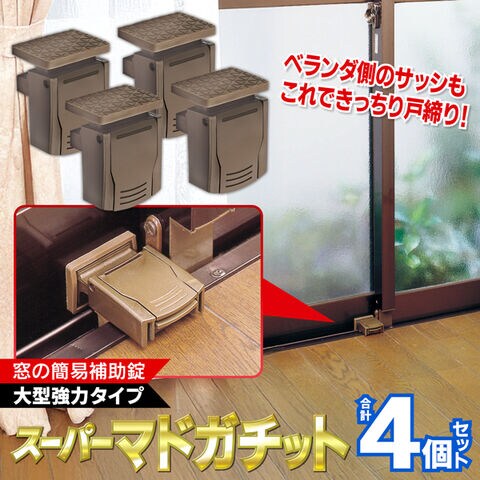 送料無料 !(メール便) 窓の補助錠 大型強力タイプ【4個入】スーパーマドガチット 防犯/赤ちゃん 日本製【 簡単 チャイルドロック 簡易錠 サブ鍵 カギ ロック ベランダ 防犯グッズ 新着!】 送料込 5M◇ スーパーマドガチット2個