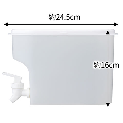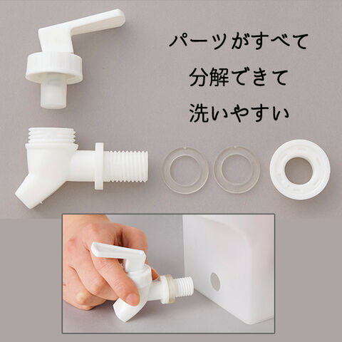 | 主材質 | 本体、フタ、蛇口、レパー、ナットパーツ:ポリプロピレン パッキン、キャップ部:シリコーンゴム、ステンレス |