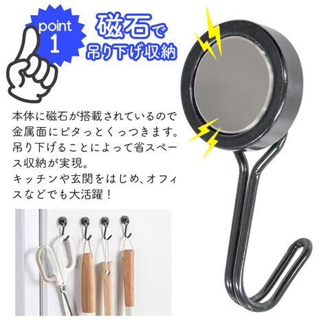 送料無料 !(メール便) マグネットフック 10個セット 耐荷重2kg/800g 可動式 吊り下げ収納【 磁石 フック 引っ掛け 垂直 スリム 小さめ シンプル おしゃれ 収納 ミニ まとめ買い 新着!】 送料込 3M◇ マグネットフックセット:ブラック