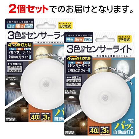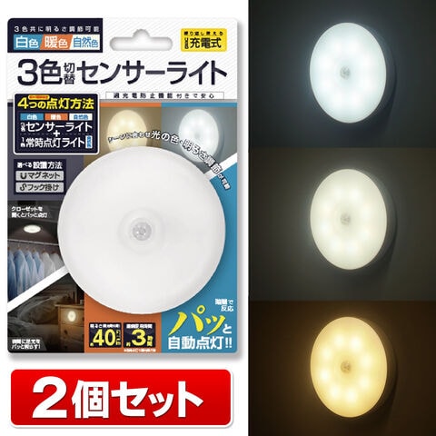 送料無料 !(メール便) 自動点灯 人感センサーライト【2個セット】調光・調色 USB充電式 コードレス【 LEDライト 夜間 ナイトライト 足元灯 フットライト 非常灯 磁石 階段 トイレ 廊下 新着!】送料込 3M◇ 3色切替ライト2個