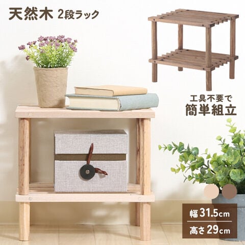 2段 マルチフリーラック 天然木 ナチュラル/ブラウン 幅31×奥26×高29cm 簡単組み立て【 二段 ミニラック 木製 オープンラック 棚 ウッドラック 小物置き インテリア 収納 リビング 玄関 おしゃれ 新着!】 /80S◇ 2段ラックF:ナチュラル