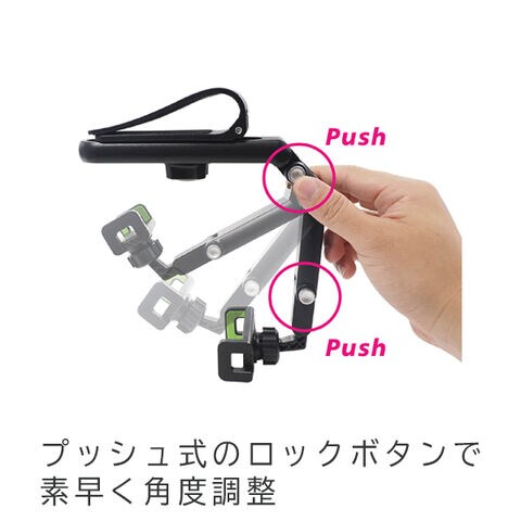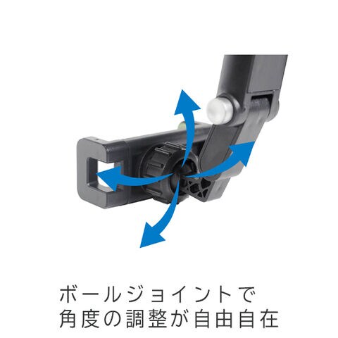 走行中に邪魔になりにくい位置に固定! 回転や角度調節も自由自在! |