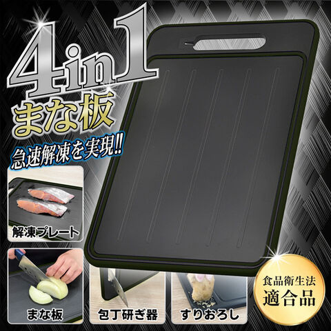 送料無料 !(メール便) 急速解凍プレート 最強の4in1まな板 包丁研ぎ器 シャープナー 粗熱取りプレート おろし器【 まないた 解凍ボード 調理器具 キッチン用品 冷凍食材 肉 魚 時短 省エネ 便利グッズ 新着!】 送料込 2M◇ 4in1まな板