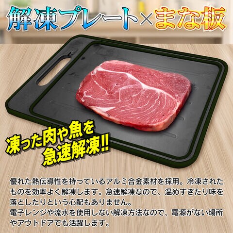 | ※ 食材や包丁など、まな板以外のものは一切付属しません。 ※ 解凍プレートの面で食材を切ったりしないでください。 ・ 掲載画像はイメージであり、実際の製品とは多少異なる場合があります。 ・ パッケージや個装形態は入荷時期によって変更となる場合があります。 ・ 製品の仕様は品質の向上・改善のため、予告なく変更となる場合があります。 |