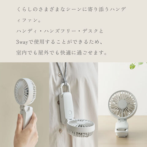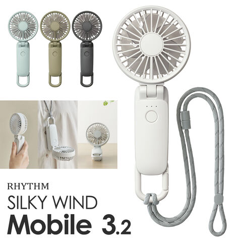 送料無料 !(メール便) RHYTHM リズム 大風量 3way ハンディファン 充電式 Silky Wind Mobile 3.2 ネックストラップ付き【 首掛け ミニ扇風機 デスク 卓上扇風機 ポータブルファン 軽量 コンパクト 新着!】 送料込 ◎ 5M◇ リズム:ライトグレー(ホワイト)