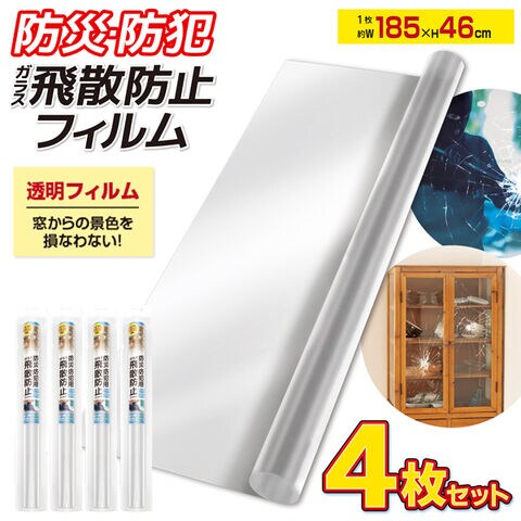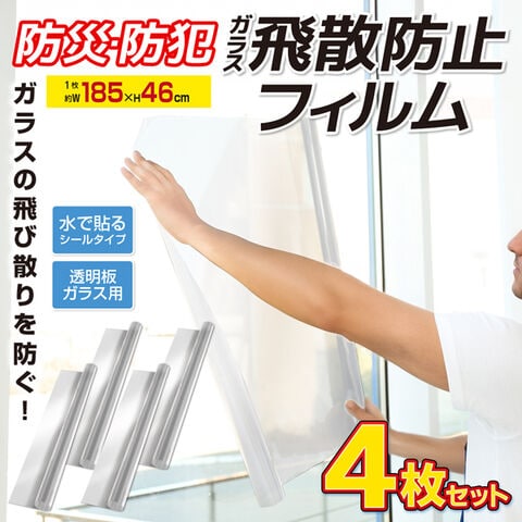 送料無料 ! 防災・防犯用 ガラス飛散防止フィルム 透明 185×46cm 貼るだけ 簡単 割れにくい 泥棒対策【 窓ガラス 防犯フィルム 飛び散り防止 防犯グッズ 防災グッズ 地震 台風 安全 】 送料込 60N◇ 防犯ガラスフィルム:4個