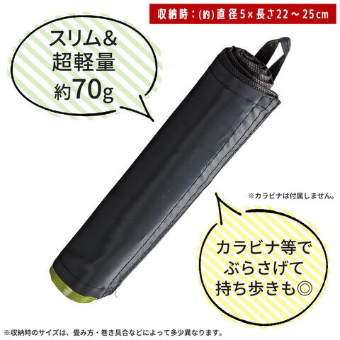 | 本体サイズ | 展開時:約60×80cm 収納時:約φ5×22~25cm ※収納時のサイズは、畳み方・巻き具合などによって多少異なります。 |