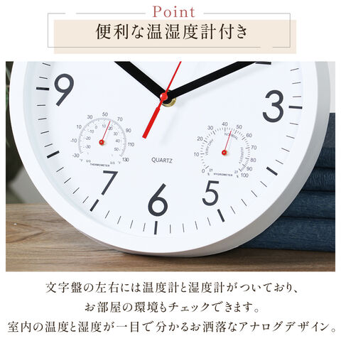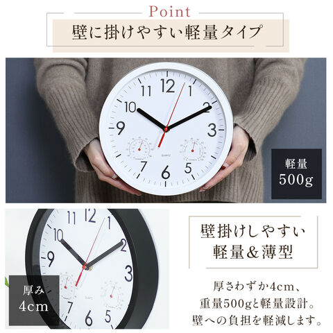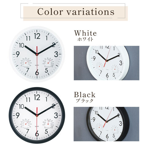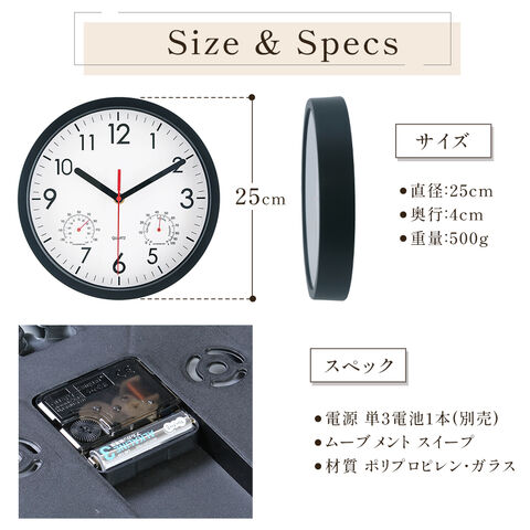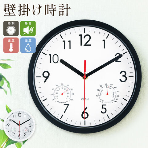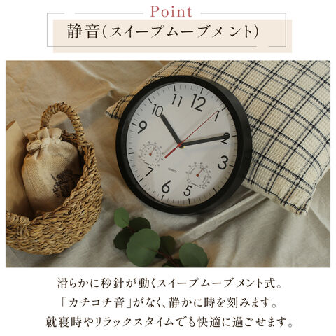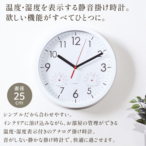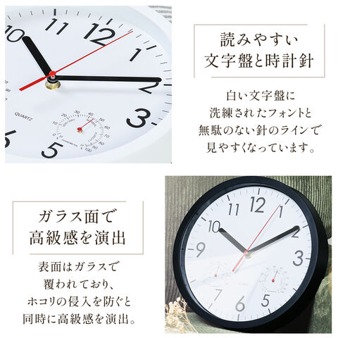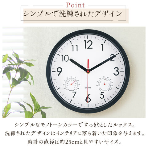 送料無料 ! 温湿度計付き 掛け時計 ウォールクロック 静音 連続秒針 25cm 温度計/湿度計 乾電池式【 壁掛け時計 アナログ時計 シンプル 見やすい おしゃれ インテリア 静か サイレント 軽量 】 送料込 60N◇ 掛時計ABN:ブラック