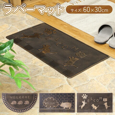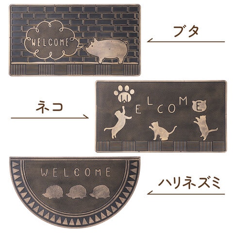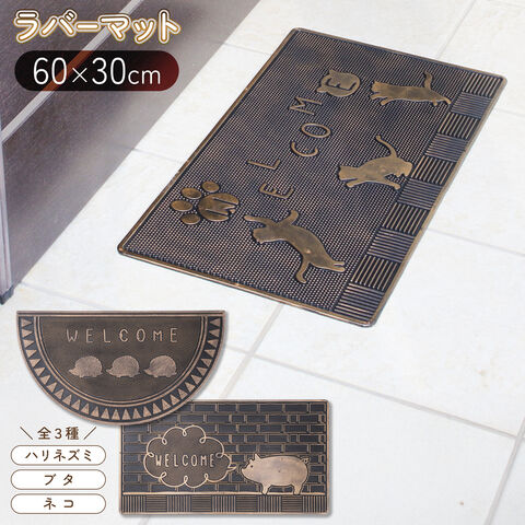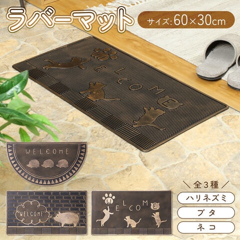 ラバーマット 玄関マット 60cm×33cm ネコ・ブタ・ハリネズミ 長方形/半円形 洗える welcome ついで買い特集【 半月型 四角 ゴム製 すべり止め 屋外 入口 お店 かわいい 猫 豚 おしゃれ 動物 新着!】 /80S◇ ラバーマット:ハリネズミ