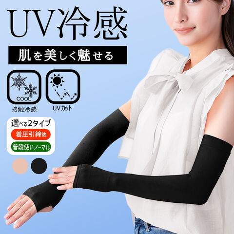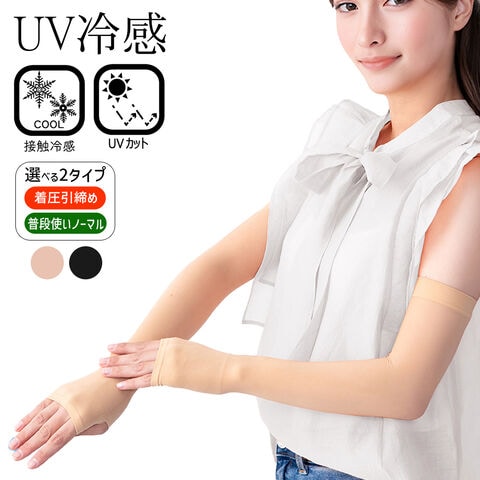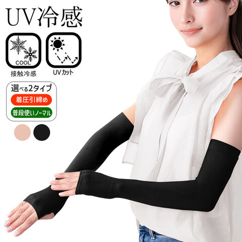 送料無料 !(定形郵便) 接触冷感 ストッキングのようなアームカバー UVカット ノーマル/着圧タイプ 親指穴付【 紫外線カット 腕カバー 手袋 二の腕 肌色 ひんやり 運転 自転車 暑さ対策グッズ 】 送料込 ◎ TY◇ 冷感アームカバー:ノーマル/ブラック