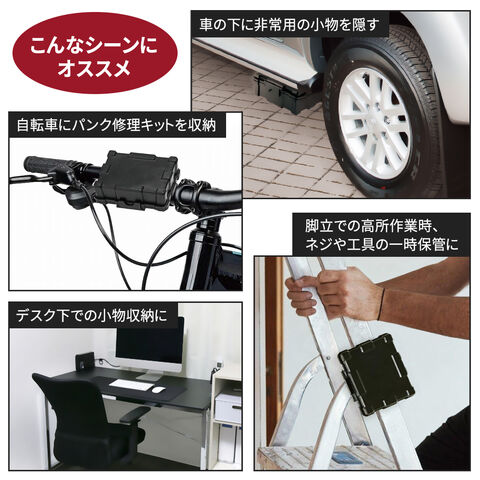 どこにもバレずに、こっそり収納! 秘密の収納を叶える、強力マグネット付きスタッシュボックスが登場! 金属面にピタッと貼りつき、 まるで“隠し金庫”のように使えます。 |