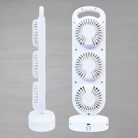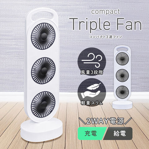 送料無料 ! 扇風機 コンパクトファン 縦型3連 スリム 充電式/USB電源 2way 広範囲 風量3段階【 小型 ミニ扇風機 コードレスファン 季節家電 軽量 デスク 寝室 キッチン トイレ 暑さ対策グッズ 】 送料込 80S◇ 3連ファンED