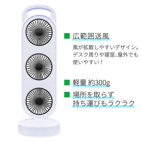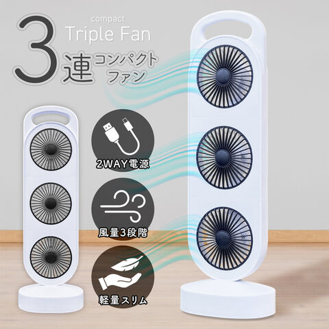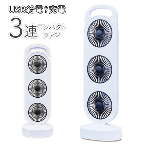 | USB給電/充電 両対応 コンパクト3連ファン |