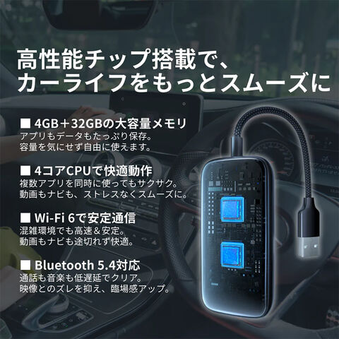 | 対応機能 | 有線CarPlay/Android Autoをワイヤレス化 |
