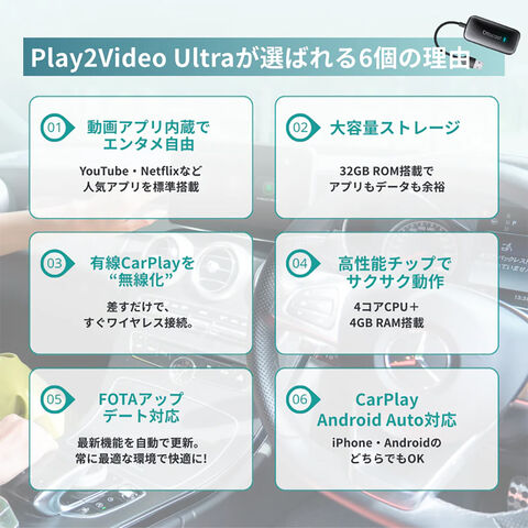 送料無料 ! Ottocast オットキャスト Play2Video Ultra メディアアダプター CA-515T 有線CarPlay対応車用【 プレイ2 正規品 スマートカーアダプター 自動車 車内 車載 ワイヤレス 動画視聴 音楽 新着!】 送料込 60N◇ OTTO