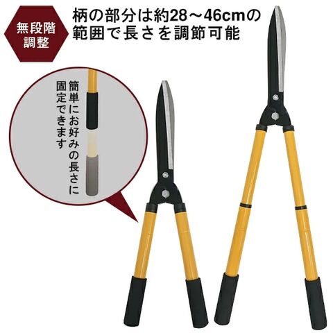 | 全長56~74cm 長さ無段階調整タイプ 伸縮式刈込ハサミ |
